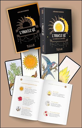 Dès sa création, « L’Oracle Gé » de Gérard Barbier fut un succès. Ce jeu divinatoire au graphisme simple et éloquent constitue un merveilleux médiateur entre l’invisible et vous pour évaluer votre situation actuelle, visualiser votre avenir proche, canaliser vos énergies et diriger vos efforts vers une vie meilleure. Ce jeu « Oracle Gé » est composé de 61 lames. Il est accompagné d’une notice explicative et d’une pochette satinée.